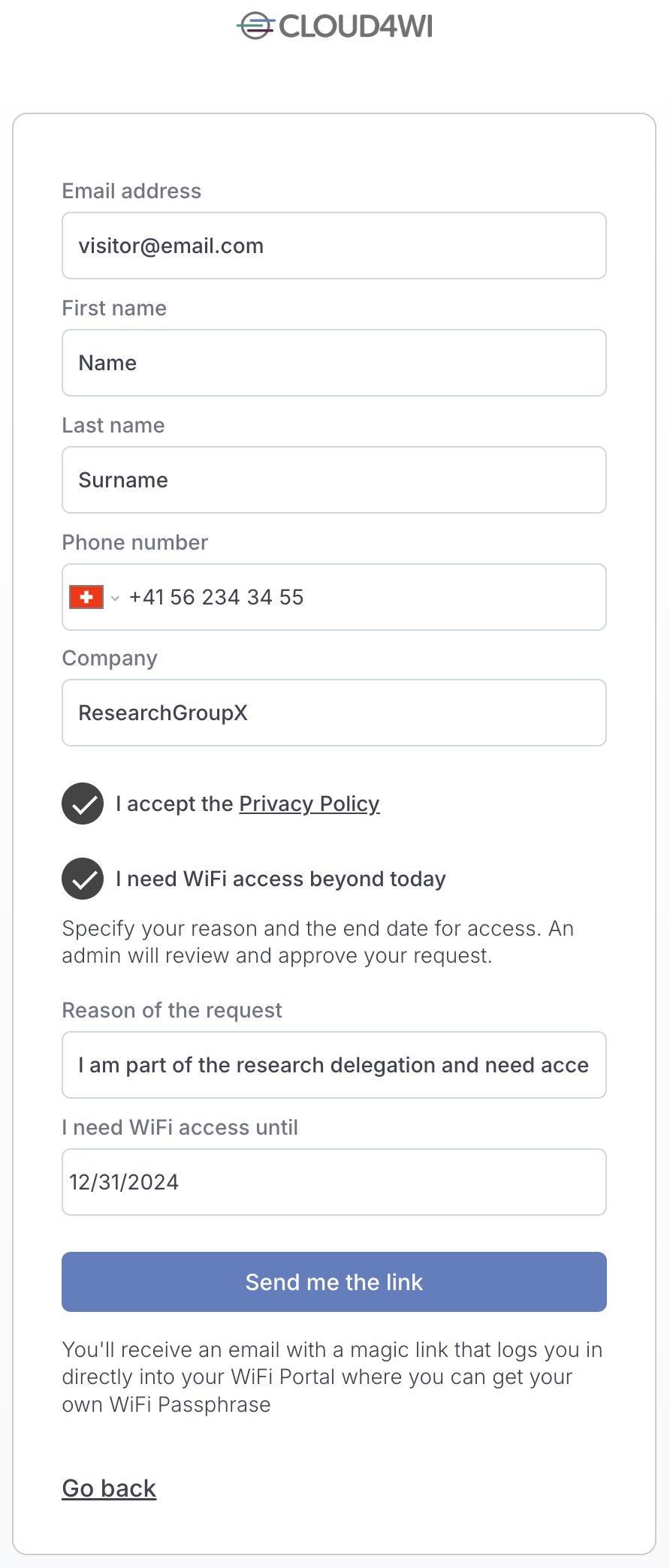 Daily Visitors or external visitors than than need an extended temporary access have now the option to self-onboard via the WiFi Portal.