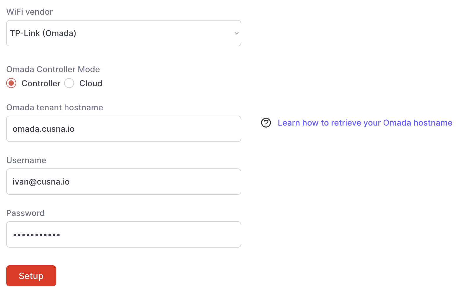 * **Omada tenant hostname**: the hostname of your Omada instance
